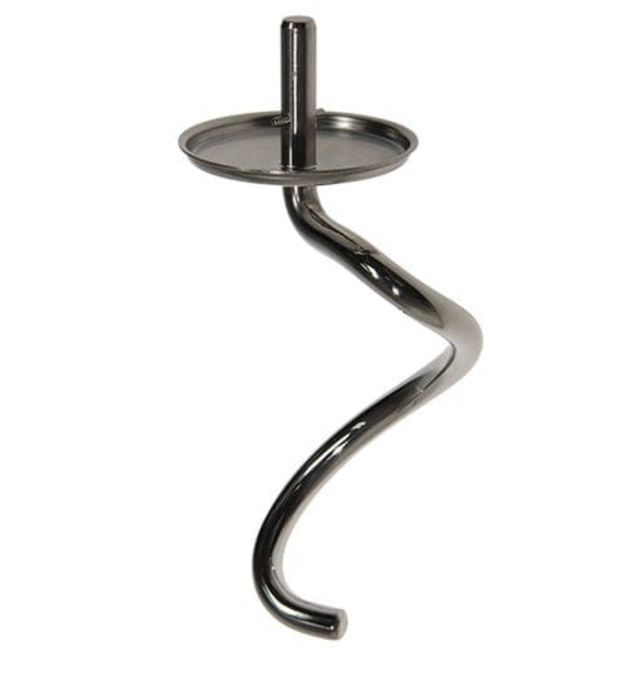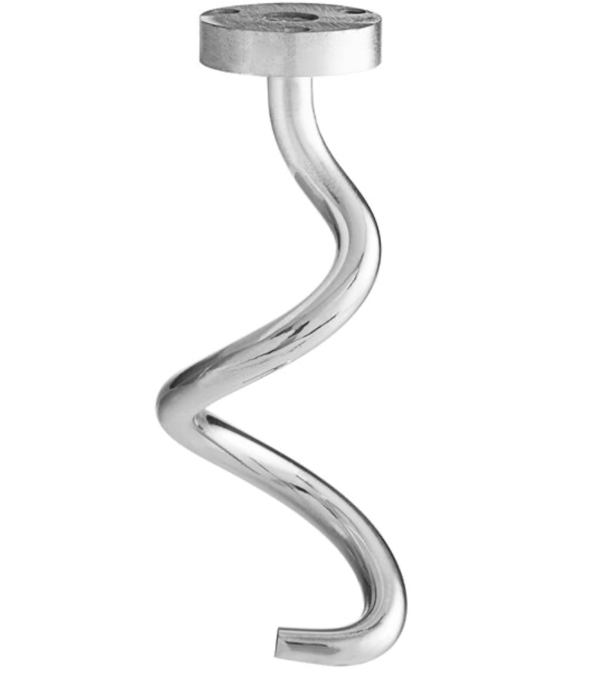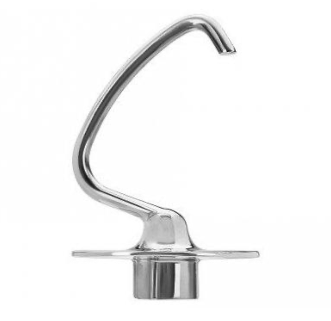 Begin by placing all of your ingredients in the mixer bowl and insert your dough hook attachment. Yours may look similar to these.